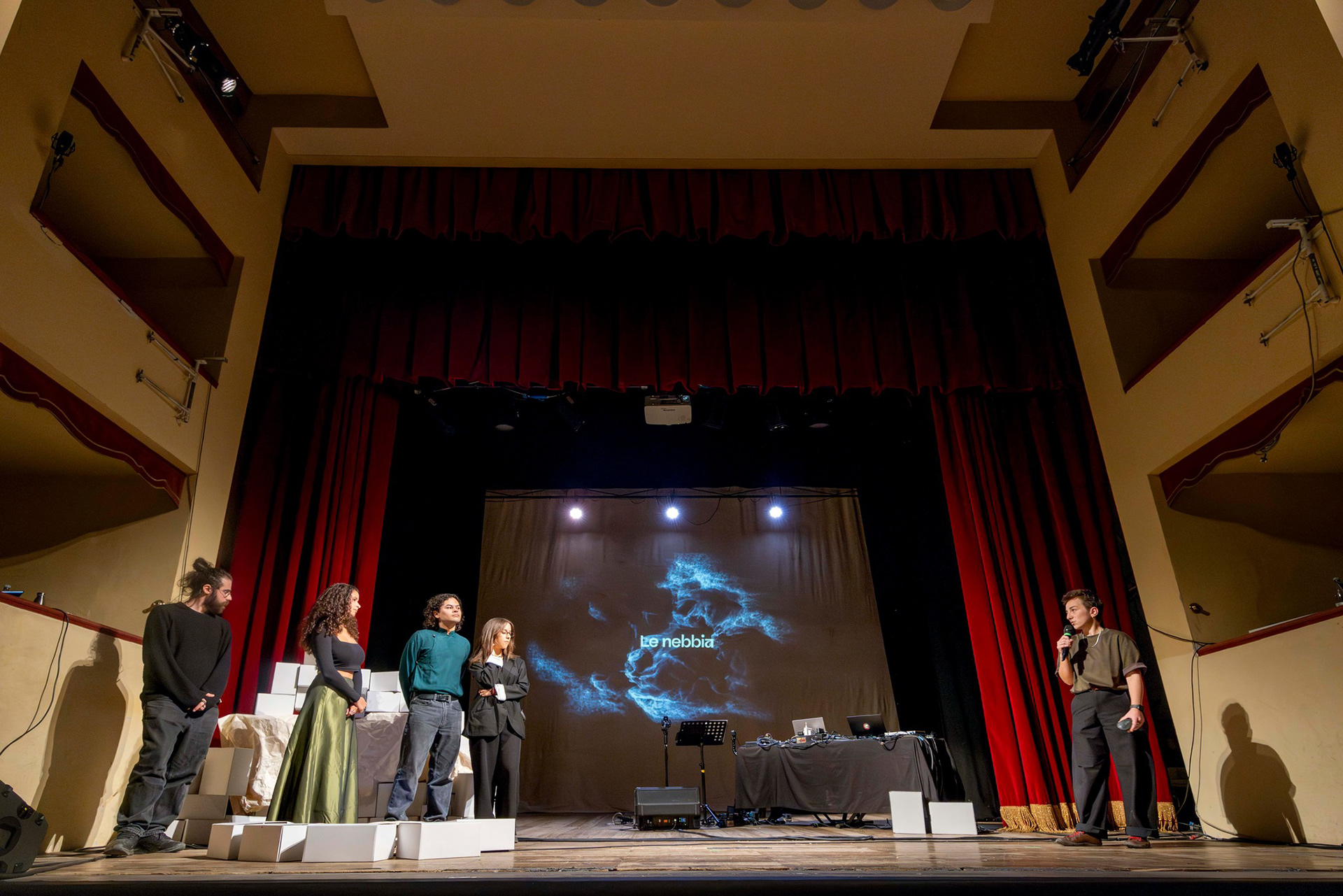 Project developed in collaboration with Saint Louis College of Music: visual design for Javier Girotto's concert, held at the Campiglia Marittima Theatre. The project will be completed in Argentina in 2026.