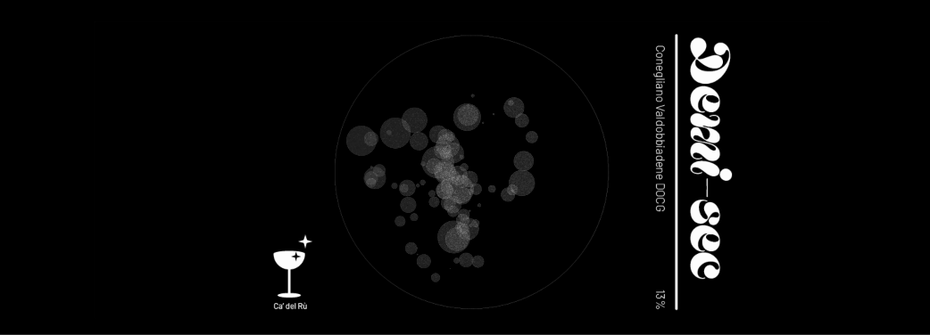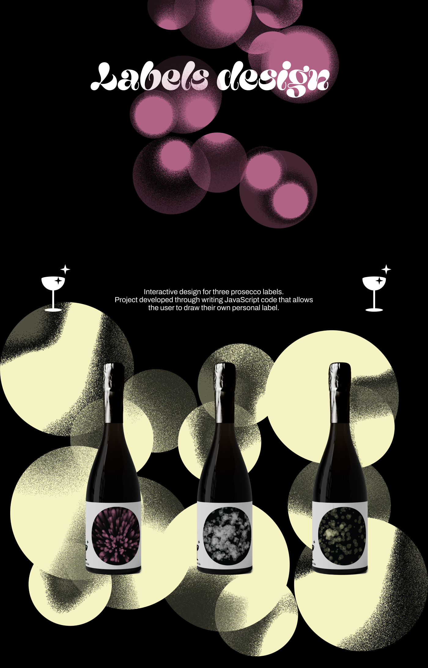 Labels design for 3 prosecco bottles created with Javascript code