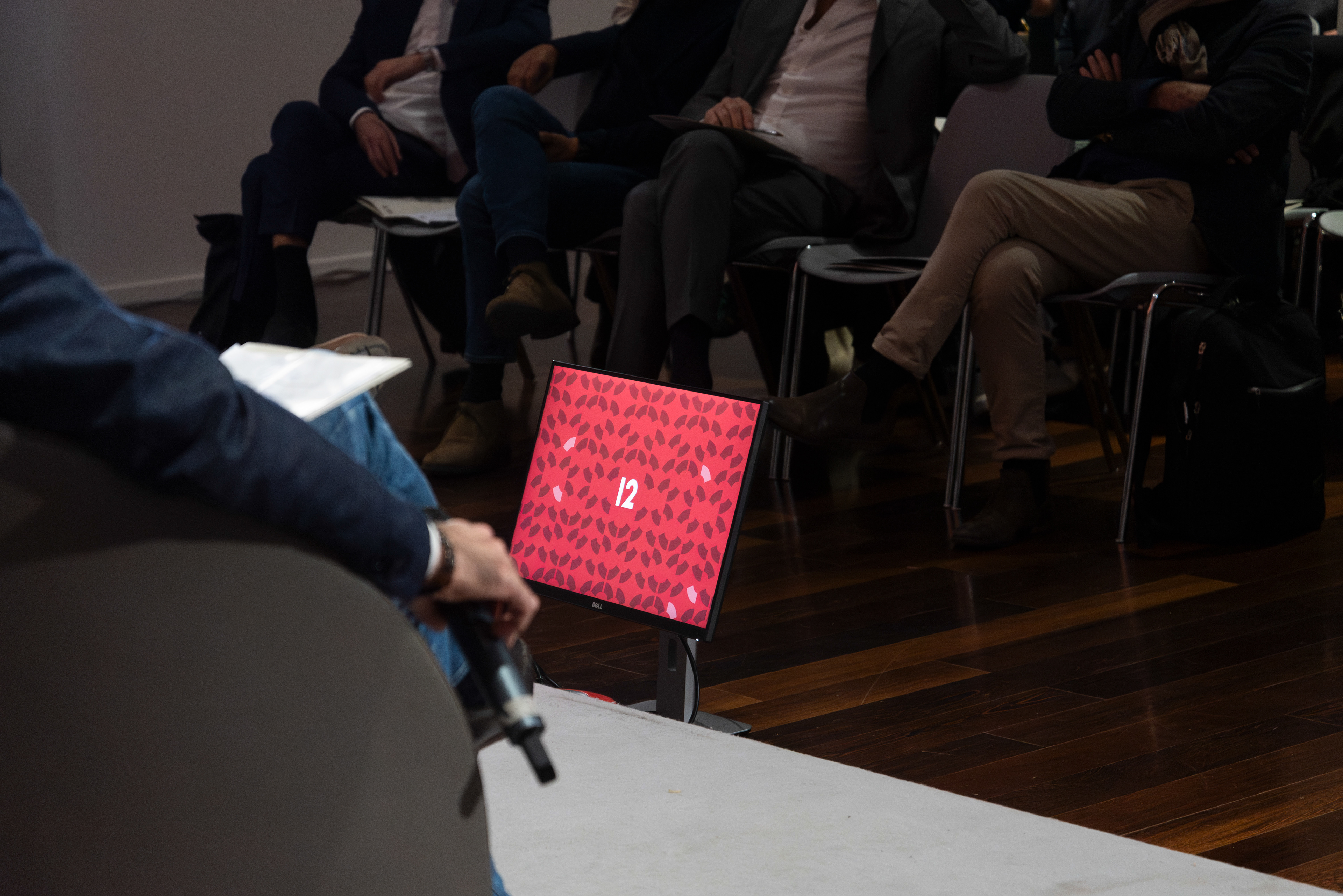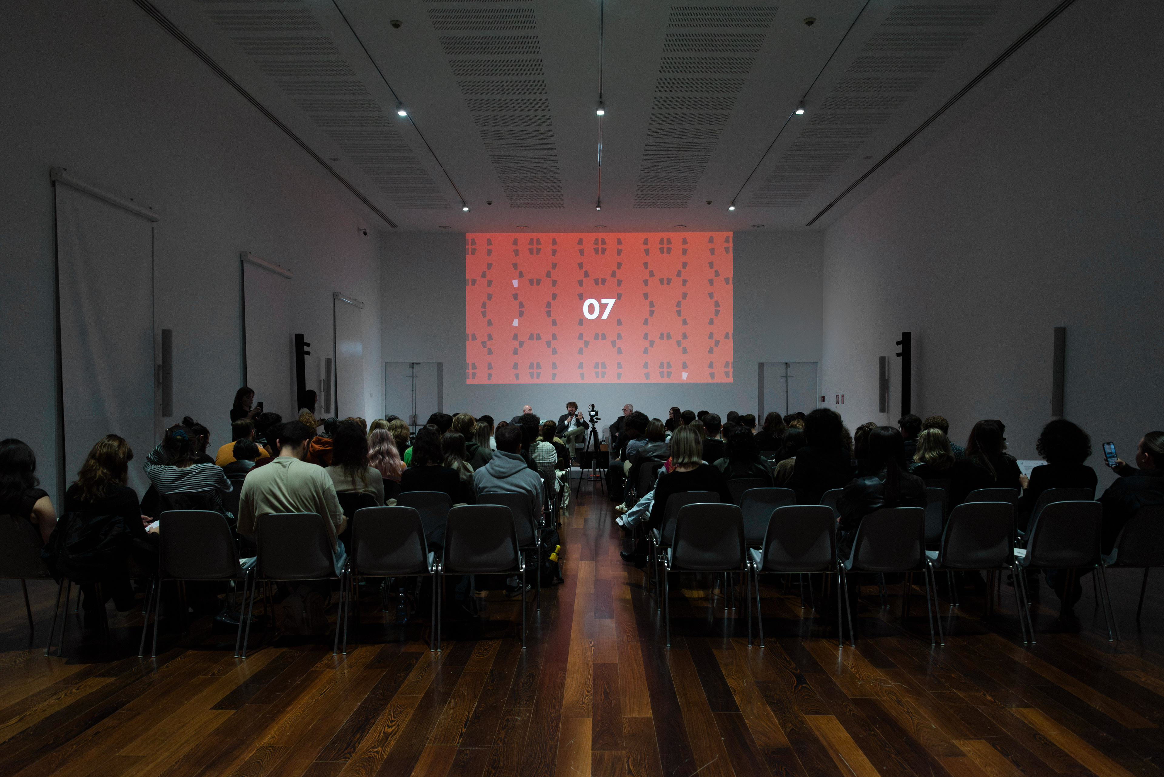 Visual identity for the series of three meetings held at MAXXI. Shown here is a focus on motion graphics, used to create the timers that punctuated the passage of 55 minutes.